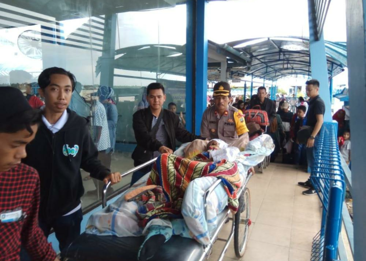 KAPOLSEK Kundur Kompol Endi Endarto membawa orang sakit di pelabuhan. foto: Ilham/Haluan Kepri