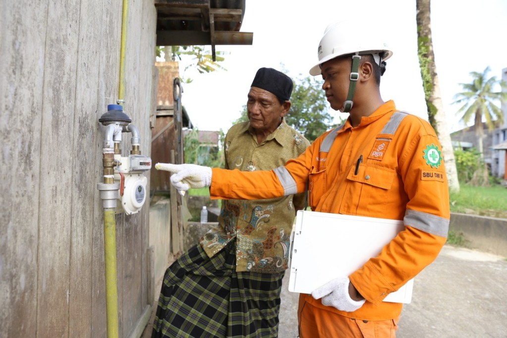 Petugas mengecek meteran gas pelanggan PGN. DOK PGN