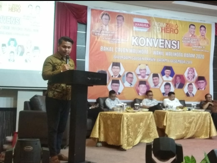 Ketua Tim Penjaringan Partai Hanura Kota Batam, Kamaruddin Muda mengatakan bahwa 13 kandidat yang sudah mengembalikan berkas diundang untuk bisa menyampaikan visi misinya, namun demikian hanya 7 kandidat yang hadir masing-masing Lukita Dinarsyah Tuwo, Mustofa Widjaja, Asnah, Candra Ibrahim, Johannes Tarigan dan Osco.