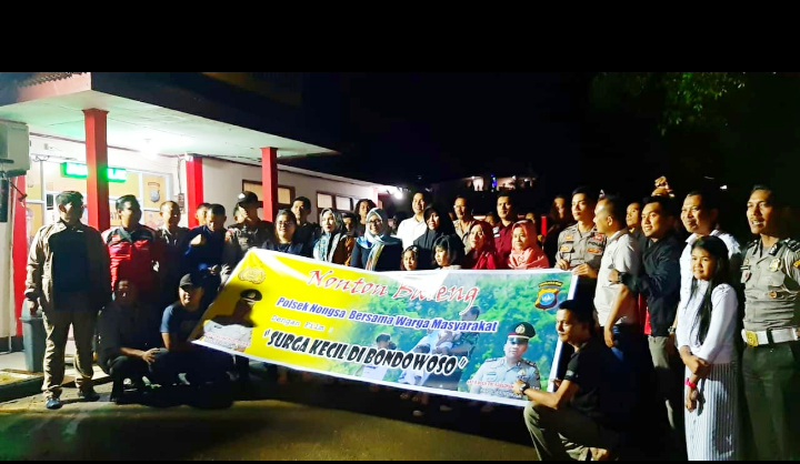 BATAM (HK) - Memperingati Hari Ibu ke-91, jajaran Polsek Nongsa menggelar nonton bareng (Nobar) Film Surga Kecil di Bondowoso bersama masyarakat Nongsa di ruang Aula Polsek Nongsa, Selasa (17/12/2019) malam.