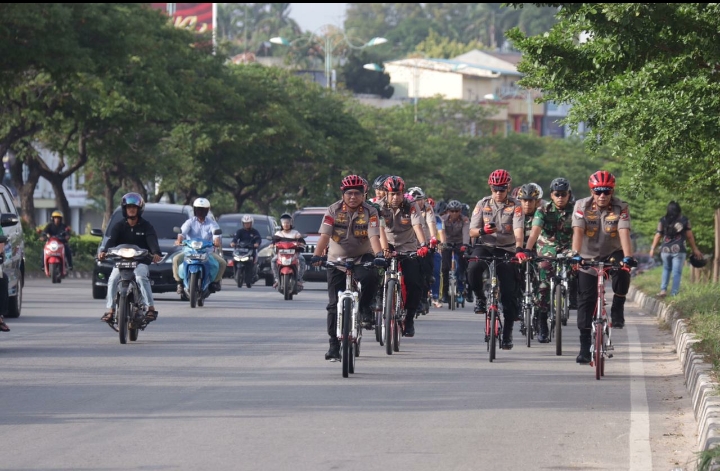 BATAM (HK) - Tingkatkan Soliditas dan kebersamaan TNI-Polri dan masyarakat, Polda Kepri menggelar Gowes bersama dengan mengambil garis start Gowes dimulai dari Polresta Barelang dan finish di Mapolda Kepri pada Jumat (3/1/20/2020) pagi.