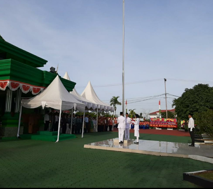 Upacara yang langsung dipimpin Kepala Kemenag Kepri Dr.Drd.H Muchlisuddin SH,MA berjalan khidmat dengan dihadiri seluruh perwakilan Kemenag Kepri, pegawai dan instansi di bawah Kemenag Kepri,pejabat Pemprov Kepri, Pemkab Bintan, Pemko Tanjungpinang dan lainnya.