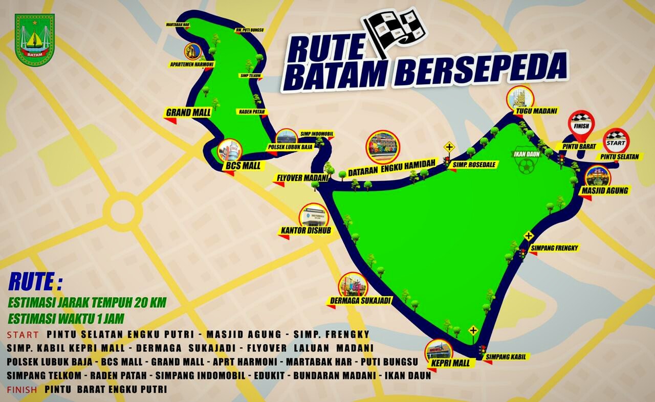 “Dari Bundaran Madani, peserta akan menuju ke simpang Kadin, Ikan Daun, dan Masjid Raya. Disetiap persimpangan akan diletakkan personel Polri. Peserta akan diarahkan ke Bundaran Otorita Batam dan akan finish kembali di Dataran Engku Putri,” tuturnya.