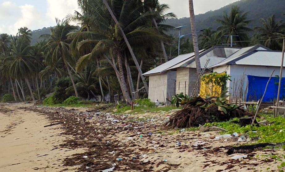 Sampah plastik yang diduga berasal dari kapal negara asing tersebut, setiap tahunnya terbawa dengan gelombang laut yang tinggi dan terhempas sehingga menghiasi sepanjang bibir pantai.