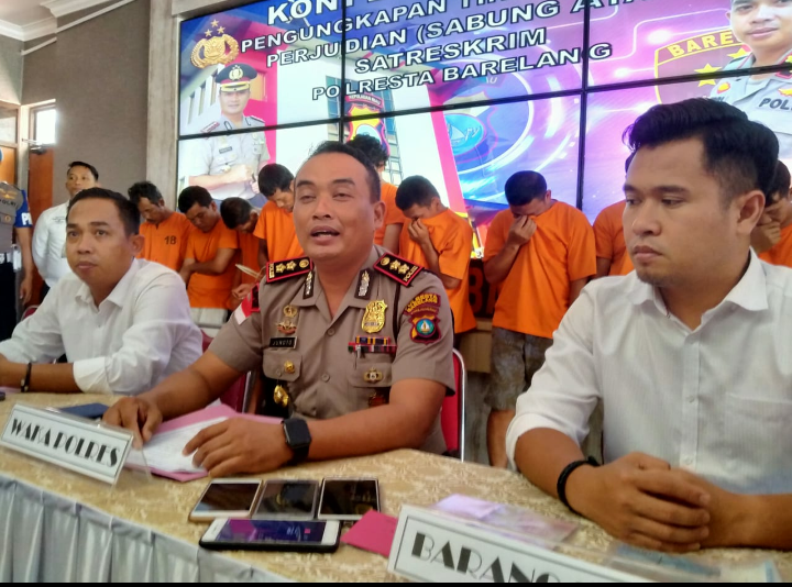 Untuk mempertanggungjawabkan perbuatan 11 pelaku yang sudah kita tetapkan sebagai tersangka ini, tegas AKBP Junoto, mereka di jerat dengan Pasal 303, Ayat 1 ke 2, Undang undang KUHP (Kitab Undang-Undang Hukum Pidana).