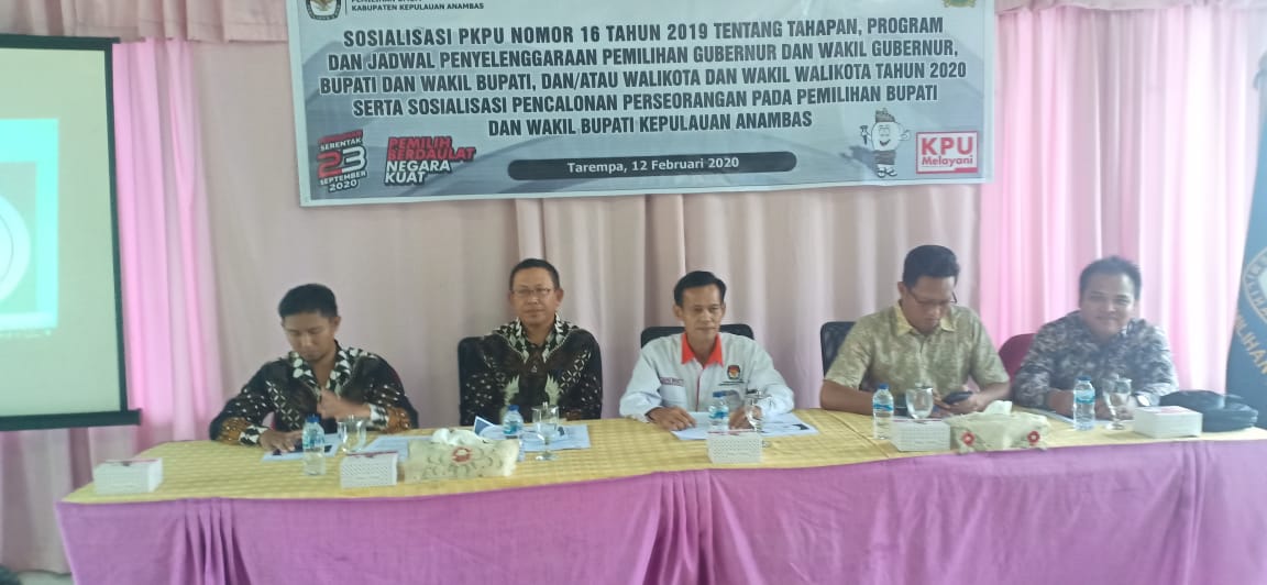 Ketua Komisi Pemilihan Umum (KPU) Kepulauan Anambas Jupri Budi, SE mengatakan, kegiatan itu bertujuan untuk sosialisasi terkait PKPU nomor 16; terkait calon perseorangan, karena batas penyerahan surat dukungan mulai dari tanggal 19 sampai dengan 23 Februari 2020.
