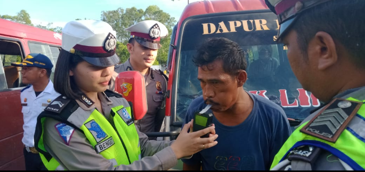 Tampak, satu persatu, sang supir pun dilakukan tes alkohol ditempat, pasalnya supir-supir Bimbar yang tidak asing lagi di Batam ini kerap ugal-ugalan di jalan raya.