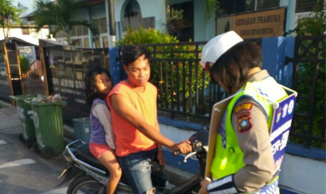 Namun ulah masyarakat tidak memakai helm saat berkendara seperti sudah mendarah daging. Disaat polisi rutin menggelar kampanye memakai helm, malah seorang pengendara sedang membonceng seorang anak kecil melintas tanpa memakai helm.