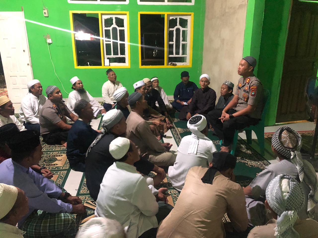BINTAN (HK)- Kapolres Bintan AKBP Bambang Sugihartono, S.I.K., MM didampingi Kasat Intelkam Polres Bintan AKP Yudiarta Rustam, SS., MM, Kapolsek Teluk Bintan AKP Dwihatmoko Wiroseno, SH, S.I.K, bersilaturahmi dengan masyarakat di Mushalla Al Mukmin Kampung Tanah Merah, Desa Penaga, Kecamatan Teluk Bintan, Selasa (25/2) malam. Selain Kades Penaga Hamrudin, juga hadir jamaah masjid.