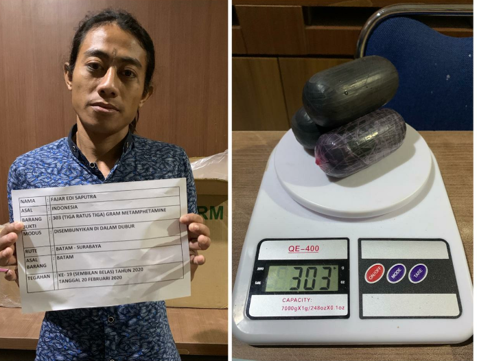 BATAM (HK) - Petugas Bea Cukai Bandara Hang Nadim kembali berhasil menegah Sabu (Methamphetamin) sebanyak 303 gram dari seorang calon penumpang Lion Air, Fajar Edi Saputra yang akan bertolak menuju Surabaya, Kamis (20/2/2020) lalu.