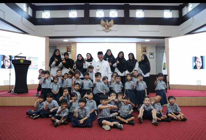 Kehadiran siswa siswi TK Mawar disambut langsung oleh Walikota H. Syahrul, S. Pd di Aula Sultan Sulaiman Badrul Alamsyah Lt. 3. Rabu (26/2).