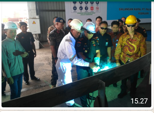 BATAM (HK) - Untuk menjaga keamanan laut, Direktur Operasi PSDKP RI melakukan peletakan lunas (Keel Laying) terhadap 2 unit kapal pengawas tipe C, di salah satu galangan kapal di Sagulung, Jumat (27/2/20) siangnya.