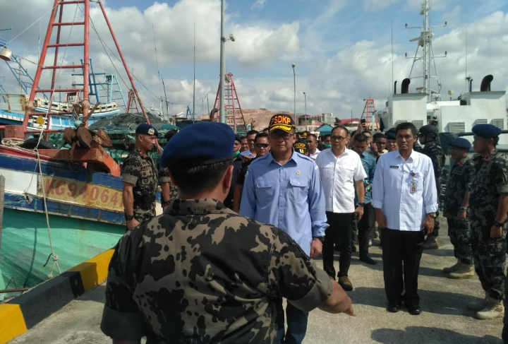 “Semua kapal-kapal yang masuk ke wilayah Indonesia harus diawasi dengan ketat. Tak bisa sembarang masuk ke perairan Indonesia kita ini,” ujarnya Edhy Prabowo saat meninjau 5 kapal ikan asing Ilegal yang berhasil ditangkap petugas PSDKP Batam.