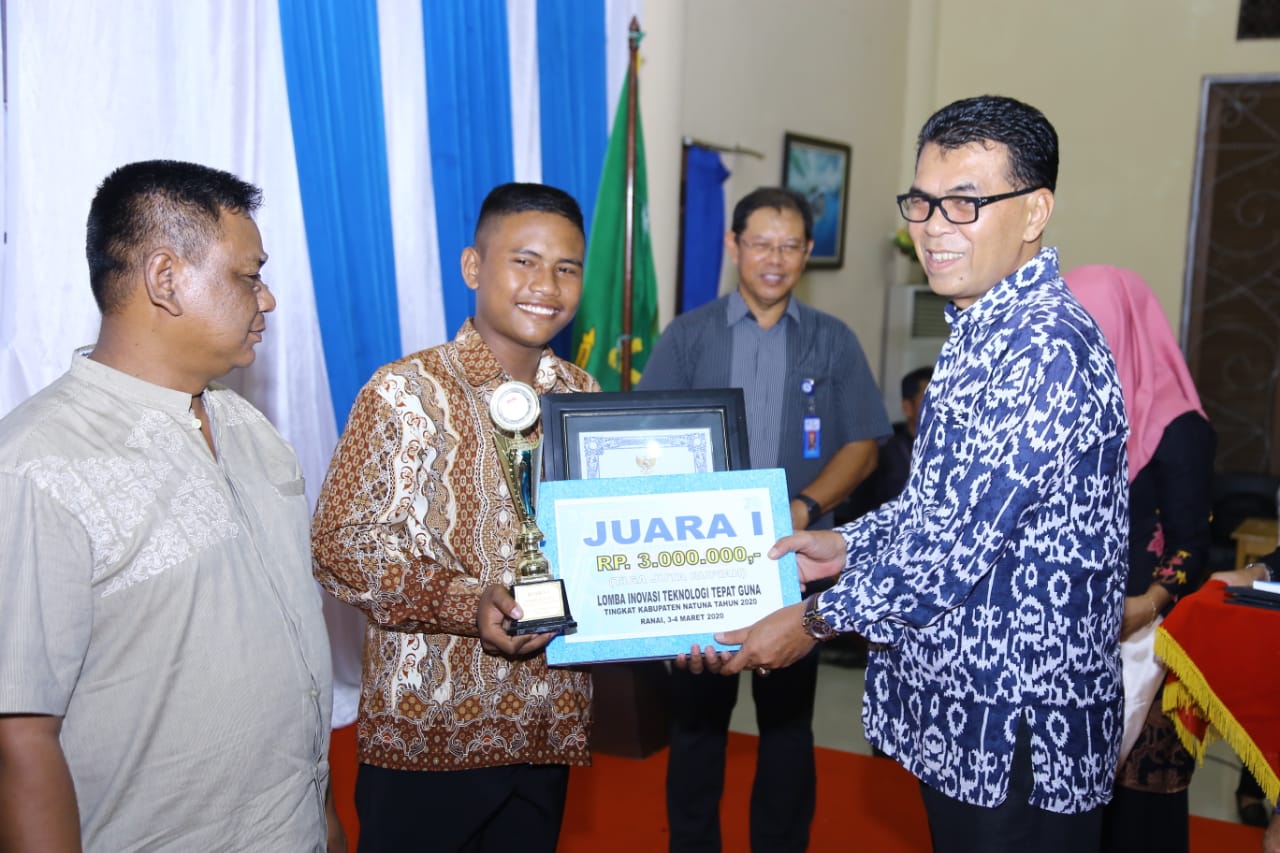 Sementara itu, Kepala Dinas Pemberdayaan Masyarakat Desa (PMD), Anrizal Zalzen mengatakan, lomba inovasi teknologi tepat guna ini merupakan lomba pertama yang diadakan di Natuna yang diikuti oleh 6 orang peserta yang terdiri dari 4 sekolah, 2 dari kecamatan.