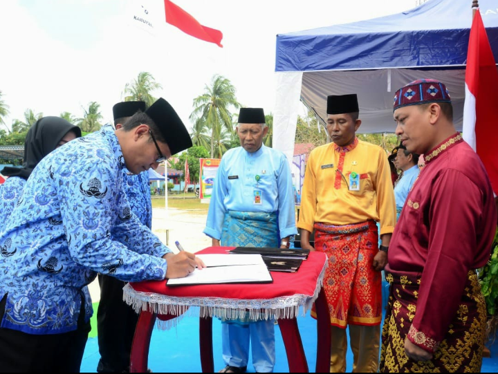 Wakil Bupati M Nizar memimpin langsung upacara sakral ini di arena MTQ ke VIII, Kelurahan Senayang, Kabupaten Lingga.(06/03)