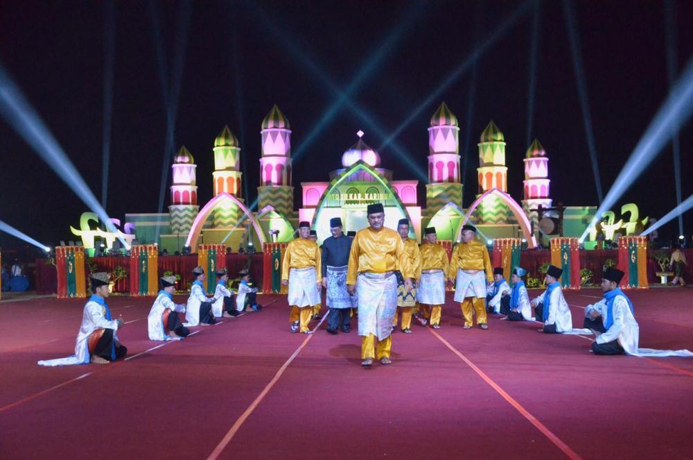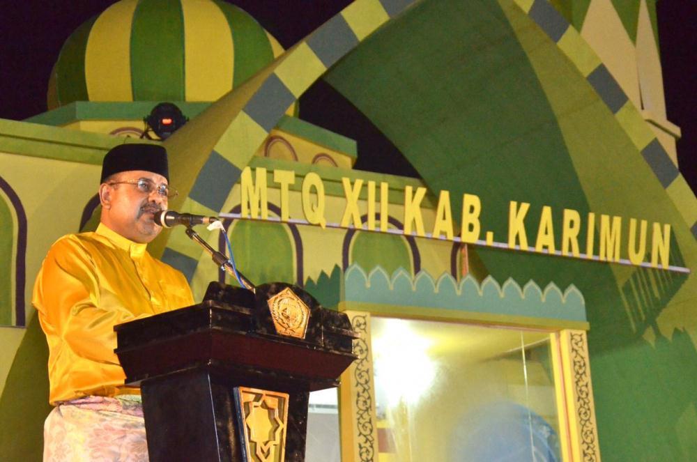 Karimun (HK) - Bupati Karimun H Aunur Rafiq membuka secara resmi Musabaqah Tilawatil Quran (MTQ) XII tingkat Kabupaten Karimun yang dilaksanakan di lapangan Taman Imperium, Kecamatan Meral, Minggu (8/3/2020) malam. Pembukaan itu ditandai dengan pemukulan beduk oleh Aunur Rafiq.