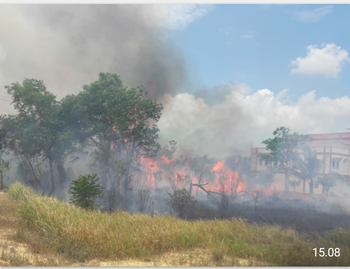 Lahan yang terbakar itu persis berada di sebelah deretan ruko bekas rumah makan Minang Jaya. Awalnya, api melahap semak-semak yang berada di sisi sebelah kiri ruko dan perlahan-lahan terus menjalar ke arah jalan raya dan sampai ke ruko kosong yang berada di pinggir jalan menuju kantor bupati.