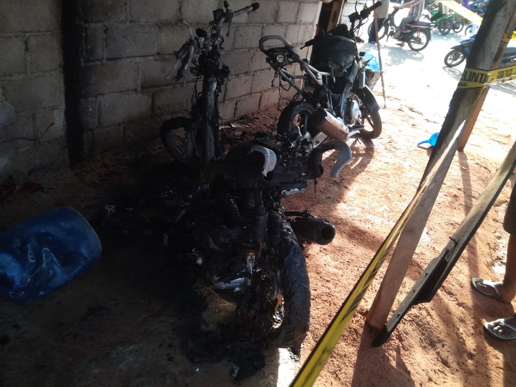 Bintan (HK) - Dua unit sepeda motor, jenis bebek dan Yamaha Vixion yang terparkir dirumah Acua tak jauh dari Pasar Kawal, Kecamatan Gunung Kijang, hangus terbakar, Minggu (15/3) sekitar pukul 03.45 WIB.