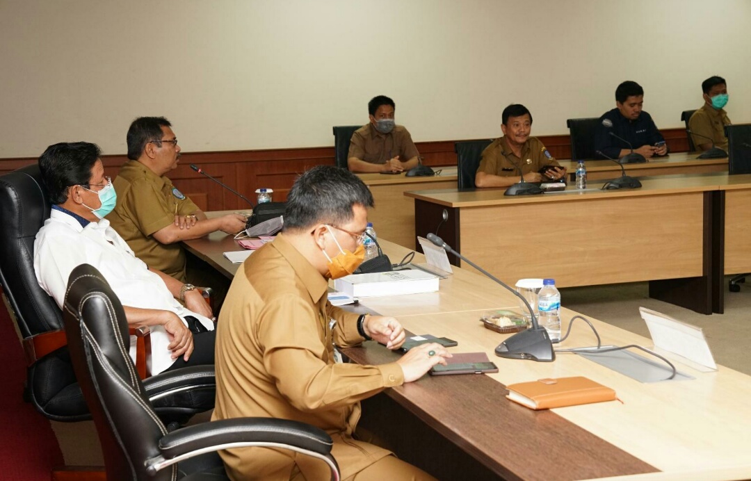 TANJUNGPINANG (HK)- Plt Gubernur Kepri H Isdianto memimpin rapat bersama Kepala OPD melalui video conference di Rupatama Lt.4, Kantor Gubernur, Pulau Dompak, Tanjungpinang, Senin (23/3).