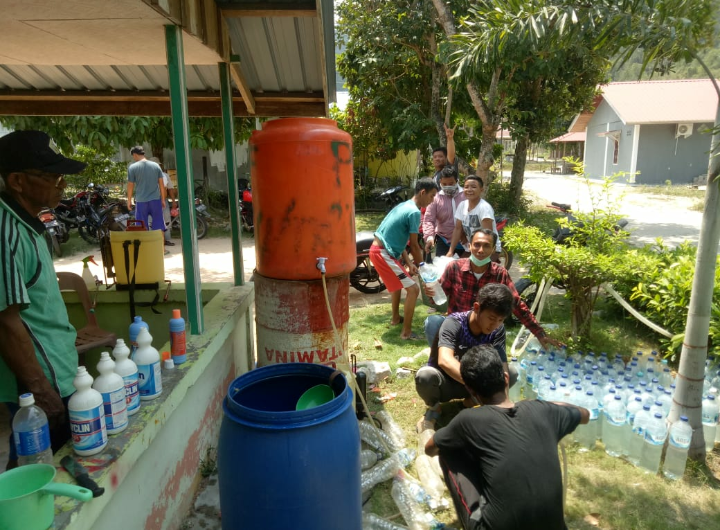 Seperti yang dilakukan ikatan pemuda di Lembah Murni, Kelurahan Pasirpanjang, Kecamatan Meral Barat. Para pemuda di daerah setempat bahu membahu membuat disinfektan yang berasal dari campuran bayclin, proclin, SOS pembersih lantai dan juga fiksal atau beragam jenis cairan serupa.