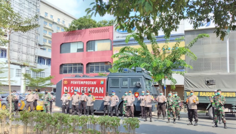 “Ada 36 kendaraan yang dilibatkan seperti water cannon yang sudah kita modifikasi agar cairan spray yang keluar berbentuk embun dan tidak seperti percikan air yang sesuai dengan standar WHO,” ucap Wakapolda Kepri, Brigjen Pol Yan Fitri pada Selasa (31/03/2020).