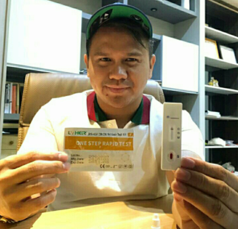 Terlihat ada alat test dan pipet untuk mengambil darah serta buffer cairan untuk diteteskan sebanyak dua (2) kali. Osco melakukan tahap demi tahap dengan teliti dan mendapatkan hasil satu (1) garis yang menandakan hasil negatif.