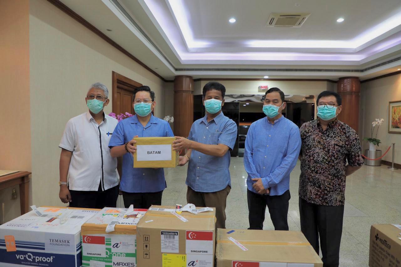 Bantuan ini diserahkan oleh Konjen Singapura di Batam, Mark Low, dan diterima langsung oleh Walikota Batam sekaligus Kepala Badan Pengusahaan Batam, Muhammad Rudi di VVIP Bandar Udara Internasional Hang Nadim, Batam Jumat (3/4/2020) malam.