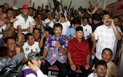 BATAM-Kemenangan sementara pasangan Cagub dan Cawagub Kepri HM Sani-HM Soerya Respationo yang dijuluki DuO HMS langsung disambut sukacita ribuan simpatisan, tim sukses dan partai pendukung dengan mendatangi Kantor Pemenangan Duo HMS di Sei Panas, Batam Rabu (26/5).