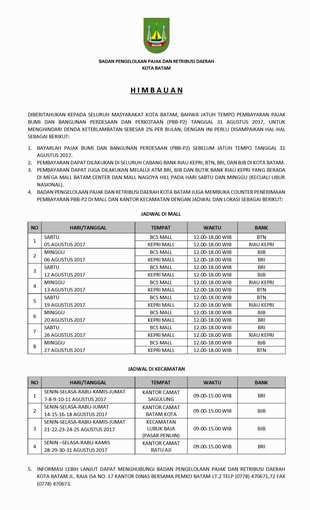TANJUNGPINANG – Menjelang perayan Imlek yang jatuh pada hari Kamis, (3/2) nanti, BM Kepri Jaya sebagai biro perjalanan dan pariwisata, yang berada di jalan IR. Sutami no 14 Tanjungpinang, kini kembali menawarkan jasa perjalanan ataupun transportasi dari Kota Tanjungpinang ke berbagai tujuan lokasi wisata yang ada, dengan harga yang sangat terjangkau untuk semua kalangan masyarakat yang merayakan Imlek.